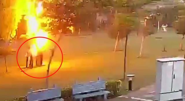 在當(dāng)?shù)貢r(shí)間2021年3月12日17時(shí)30分左右,印度首都新德里周邊衛(wèi)星城古爾岡的一個(gè)小區(qū)公園上演驚險(xiǎn)一幕,4名園藝工人聚在公園的一棵樹下避雨,突然一道閃電從天而降,擊中了避雨的大樹,樹下躲雨的4人瞬間摔倒在地,整個(gè)雷電過程持續(xù)約兩秒,這一驚險(xiǎn)畫面正好被小區(qū)公寓的攝像頭記錄了下來。